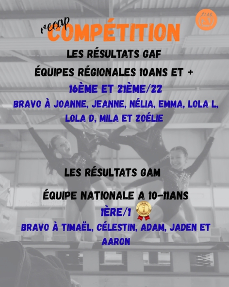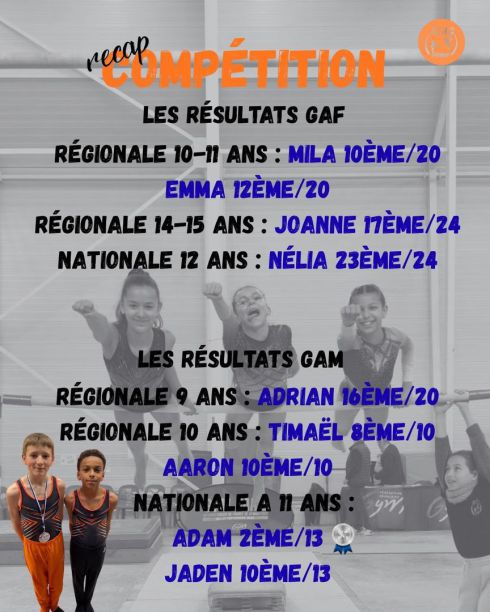 RESULTATS COMPETITION INTERDEPARTEMENTALE INDIVIDUELLES FEDERALES ET PERFORMANCES GAF&GAM - 28 février et 1er mars 2026